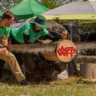 Team must consist of two men. Contestants must cut one complete disc. Any slabbing or breaking at the bottom must be less than ½” or team will be disqualified.